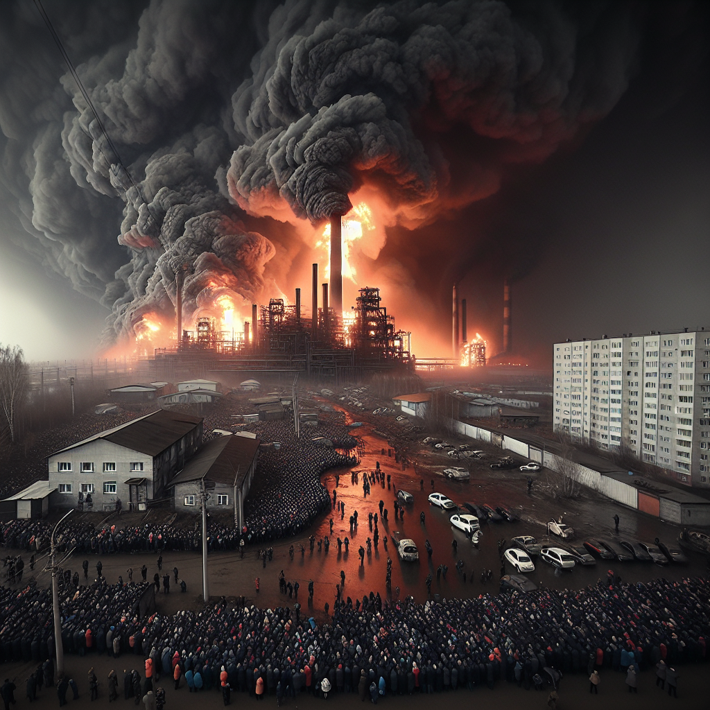 Паника в городе. Туапсинский НПЗ, атакованный дронами, продолжает гореть. Горящие нефтепродукты разлились по улице рядом с заводом.