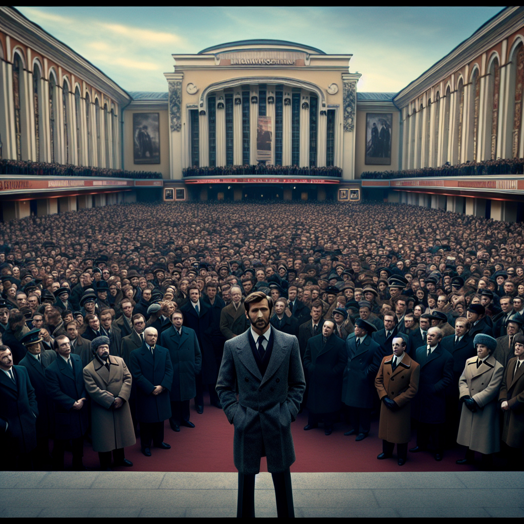 Видим эту великолепную очередь, в которых славный Ленинград: от Товстоногова с молодым Басилашвили до Гладилина. Бродим по заброшенному, полуразрушенному уродливому советскому дворцу — ДК вместе с Белкиным, по камням, разбитым стеклам, которые скрипят под подошвами, как по руинам древнего Рима.